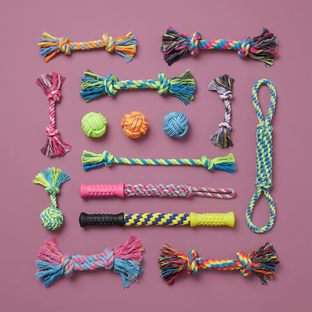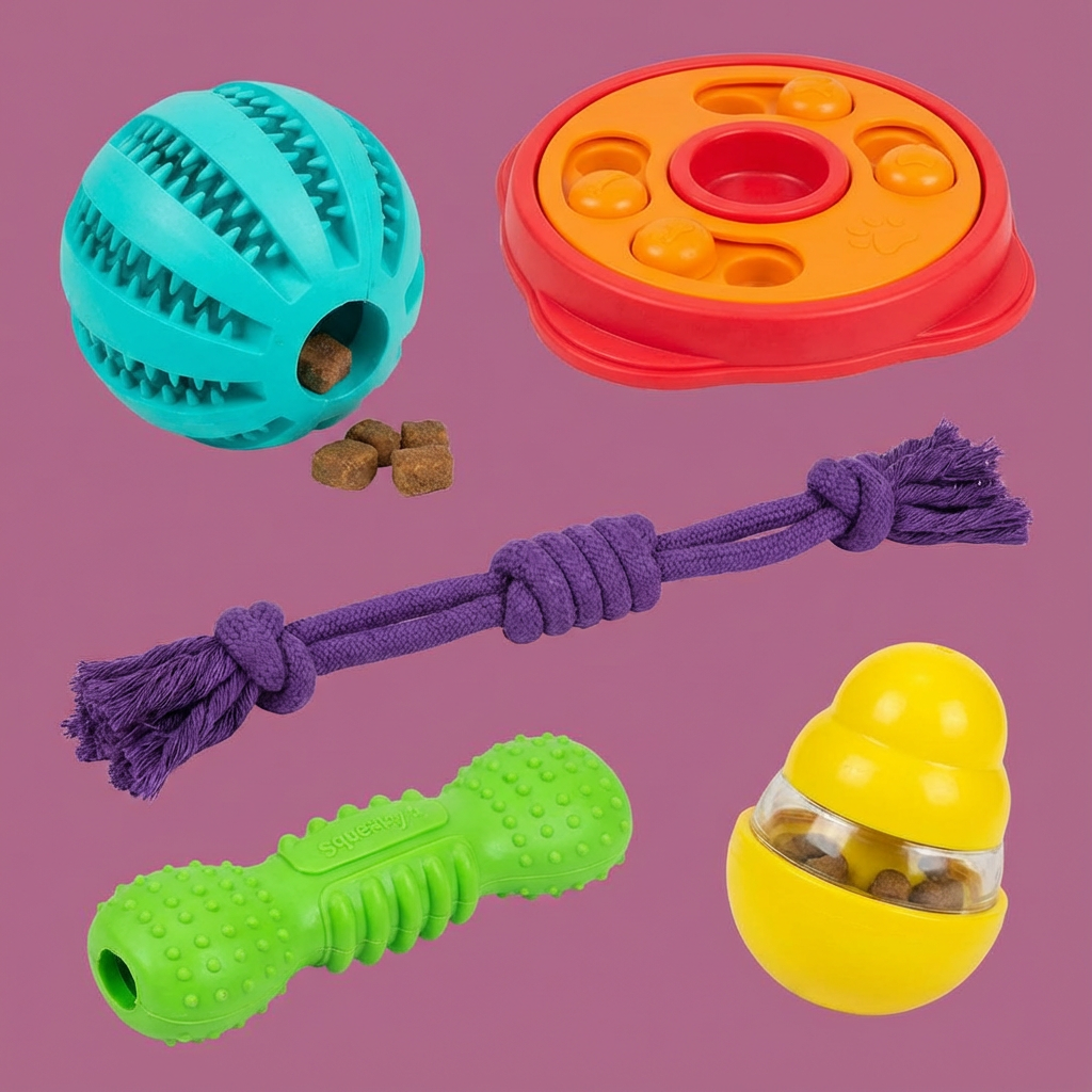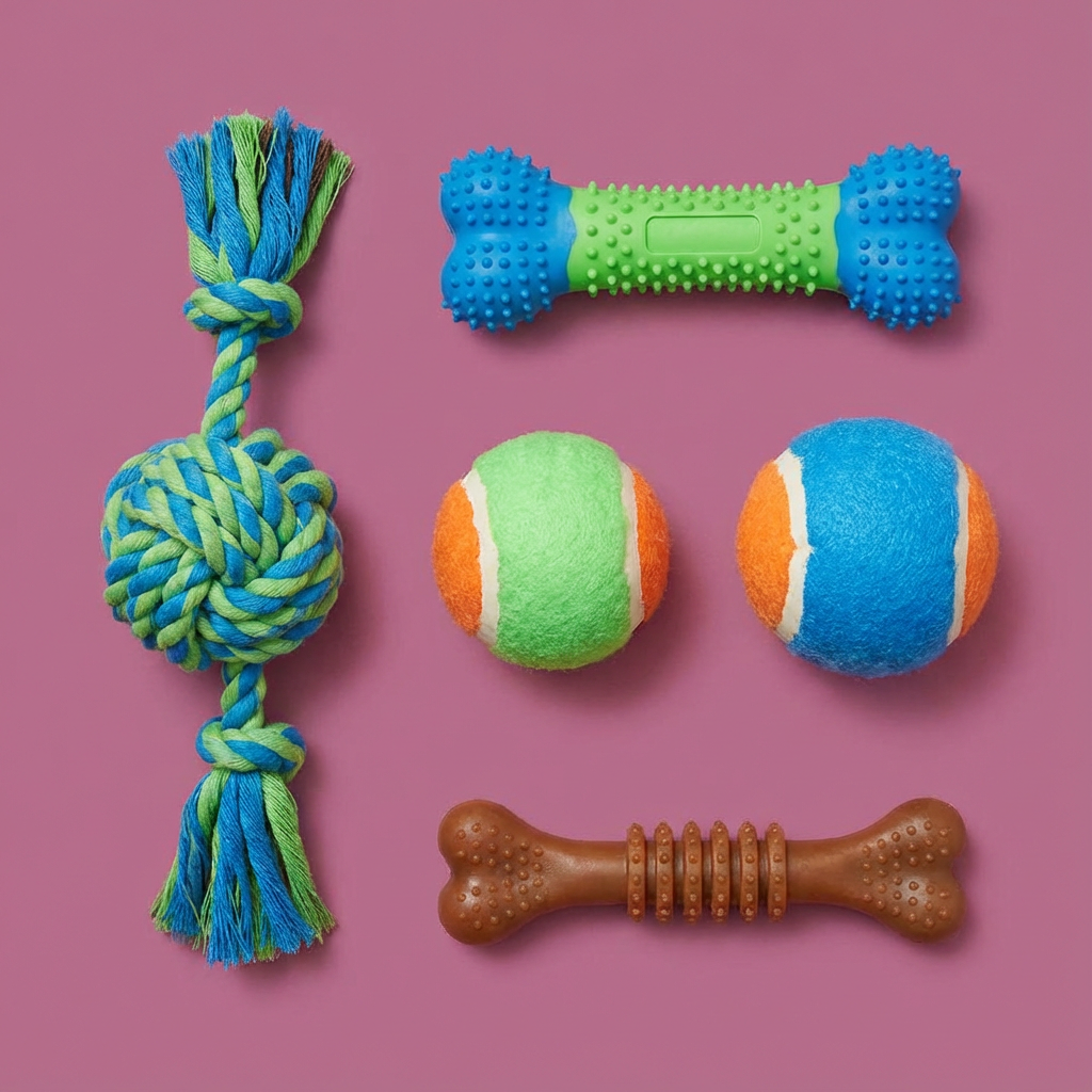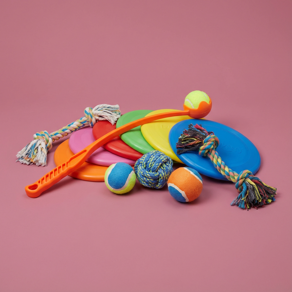 Toys That Bounce, Squeak and Fly, Tug, Chase, Fetch ‘til Tongues Go Dry, Keep Those Tails Wagging High!